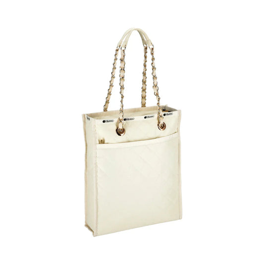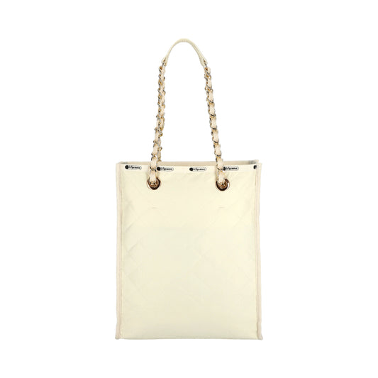 CHAIN N/S TOTE 鍊帶菱格托特包 - 沙丘白菱格壓紋