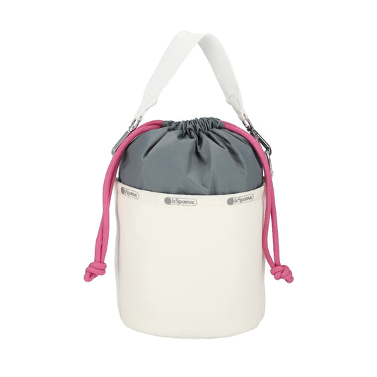 SM DRAWSTRING BUCKET 小型抽繩水桶斜背包 - 奶霜白/莓果