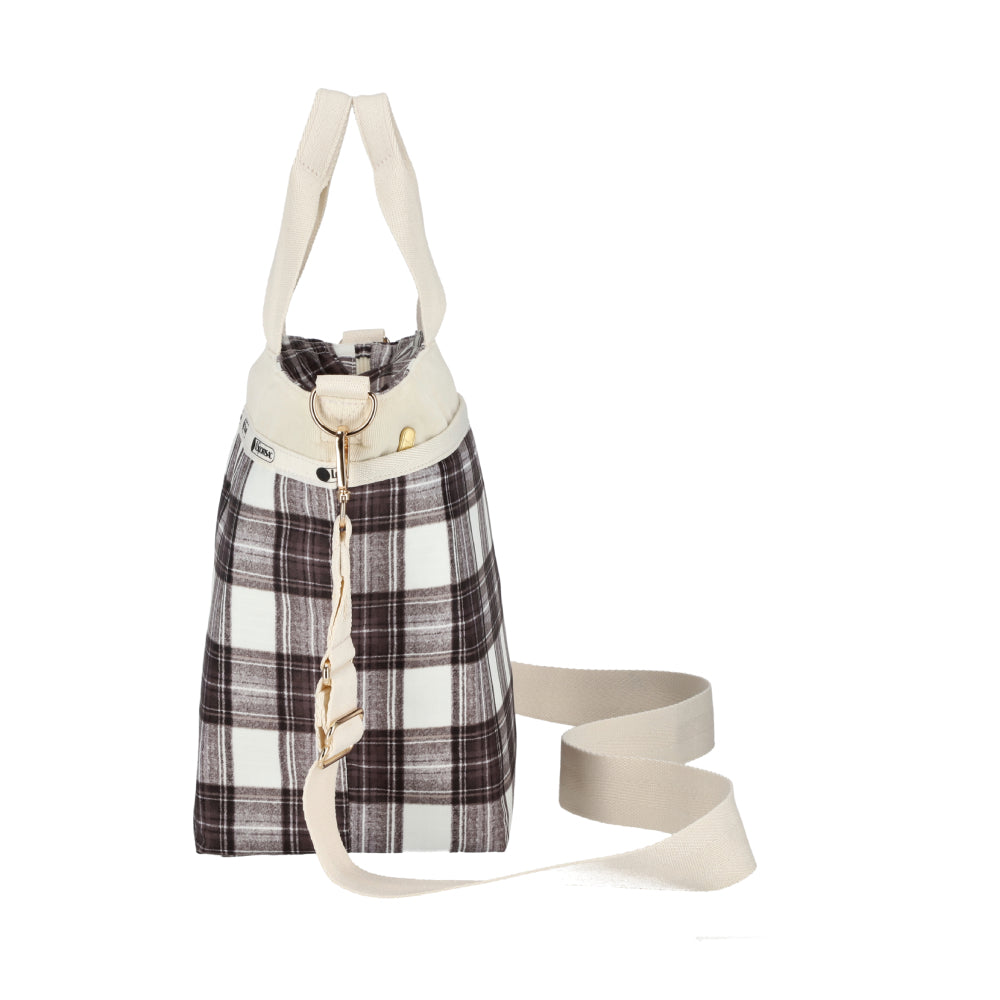 BUCKET TOTE 手提斜背兩用方形包 - 蘇格蘭塔坦/燈芯絨
