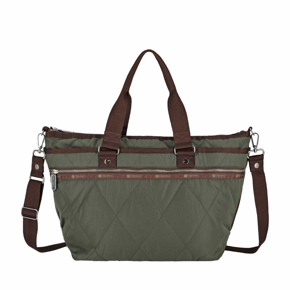 QUILT ZIP TOTE 壓紋拉鍊托特包 - 橄欖綠菱格壓紋